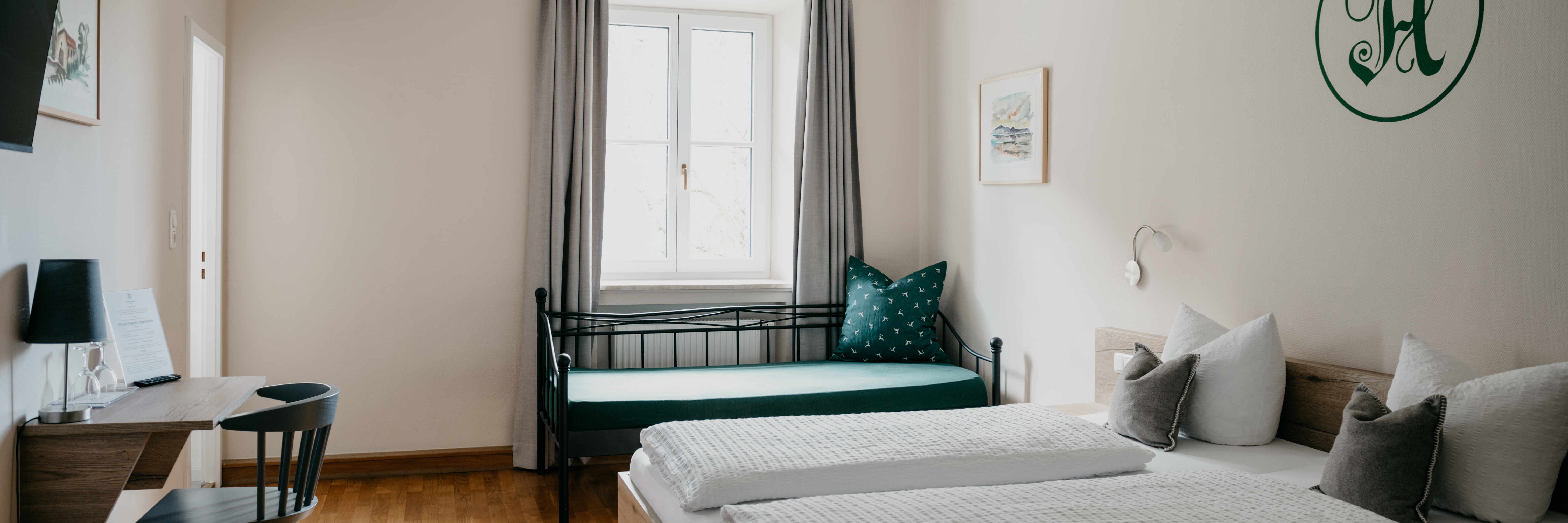 Unser Haus verfügt über 27 gemütlich und liebevoll eingerichtete Ein-, Zwei- und Dreibettzimmer. Auch für den Fall, dass Sie als Familie unterwegs sind haben wir ein geräumiges Familienzimmer, in dem bis zu 4 Personen Platz finden. Alle Hotelzimmer sind mit Flachbildschirm, Dusche und kostenfreien W-Lan ausgestattet.